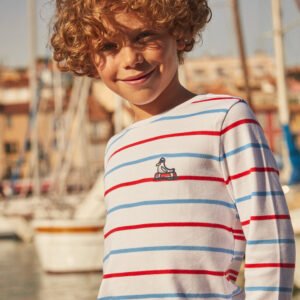 This off-white cotton T-shirt is sure to become your son's favourite. It's made from slub jersey, so it is very comfortable and moves with him without restricting his movements. The inset bands on the sleeves add an extra touch of fun. Its Club des Copains (Best friends club) print conveys a positive message within an original design. Boys can wear it with matching trousers for a casual look. Main material : 100% COTTON