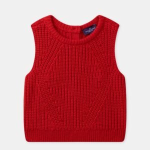 Sleeveless cardigan made of soft cotton for light and comfortable wear. Bright red with button opening at the back for easy dressing and a simple, elegant style.