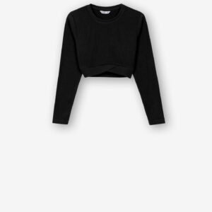 High-waisted paperbag jeans with elastic waistband. Side and back pockets. Front closure with zip and metal button.