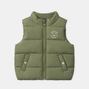The quilting and zip provide comfort and lightweight warmth. The teddy bear print and contrasting lining add a playful touch.