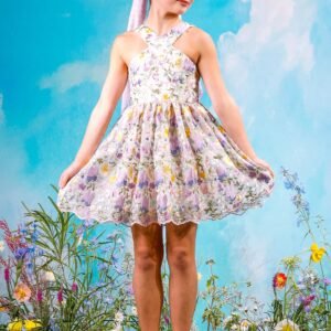 Add a touch of elegance to their wardrobe with the Dahlia Embroidered Dress. Featuring stunning embroidered florals and a halter neckline, it’s perfect for special occasions.