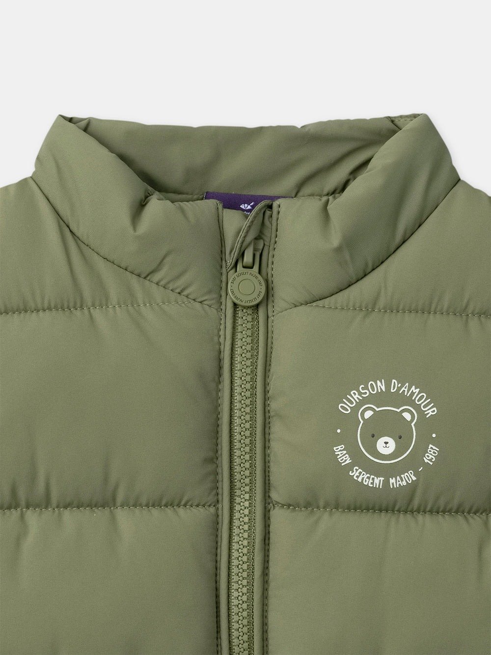 The quilting and zip provide comfort and lightweight warmth. The teddy bear print and contrasting lining add a playful touch.