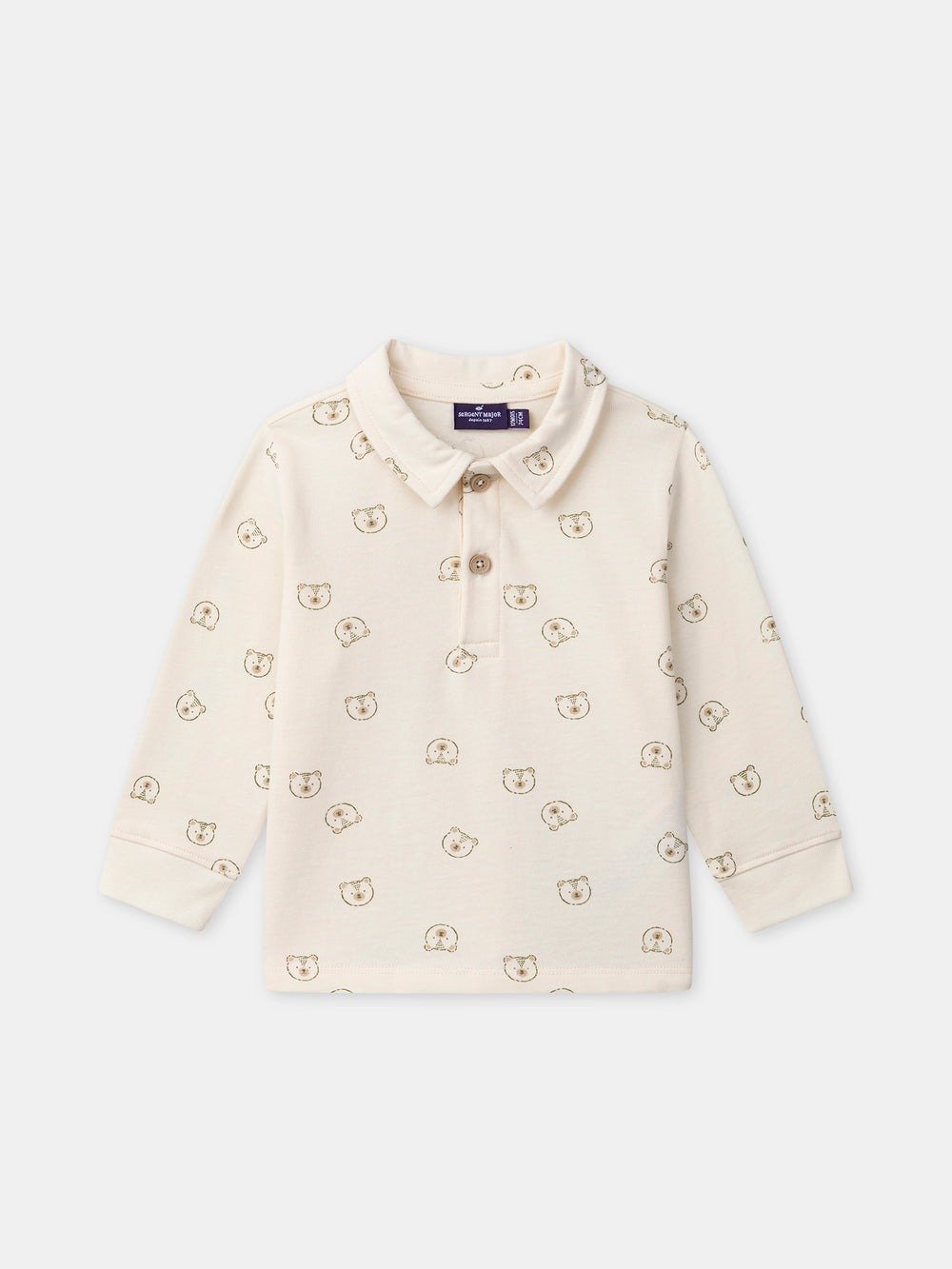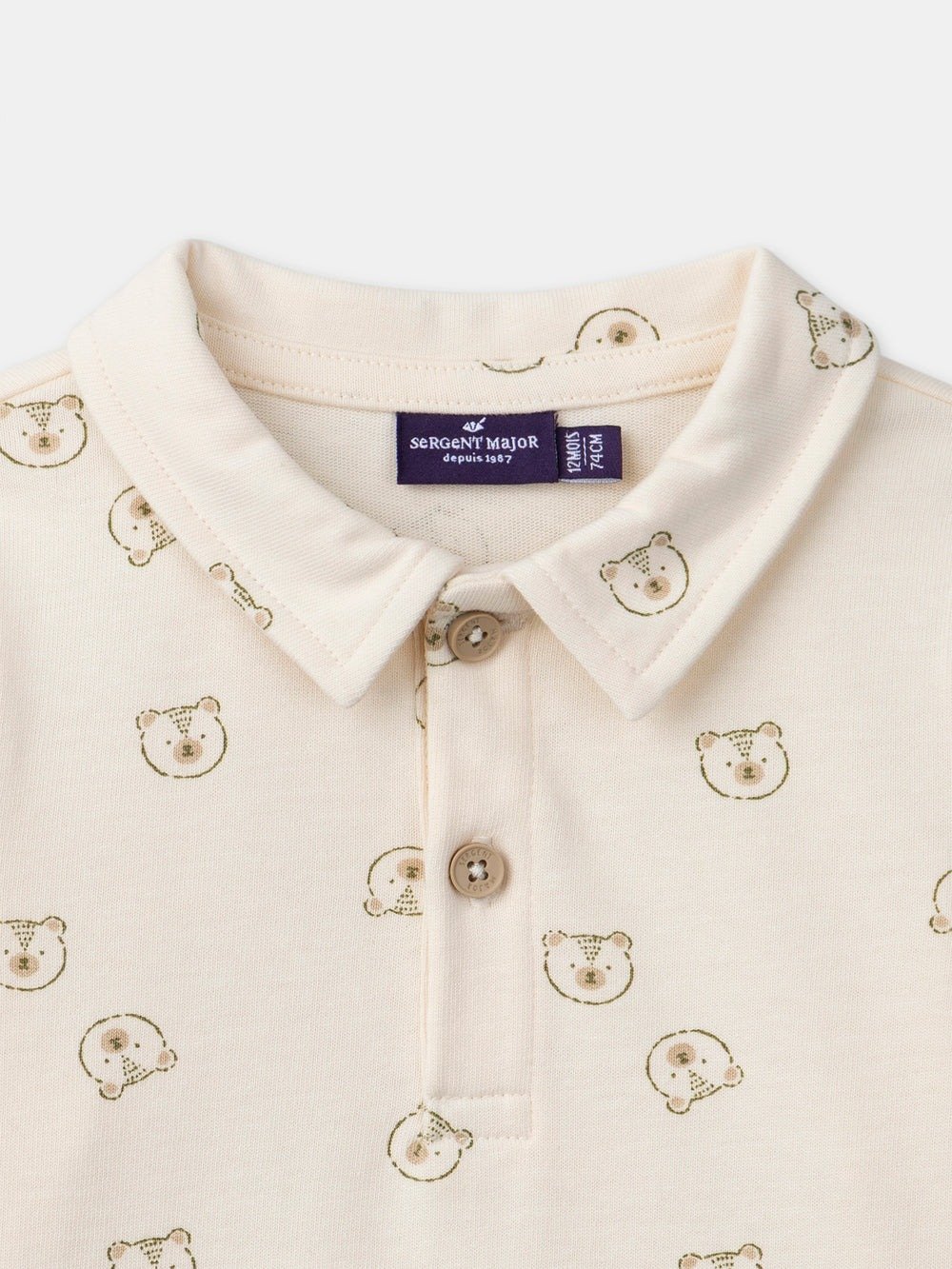 For a cheerful child, perfect for spring. The jersey and buttoned collar structure the silhouette. The teddy bear prints add a playful touch.