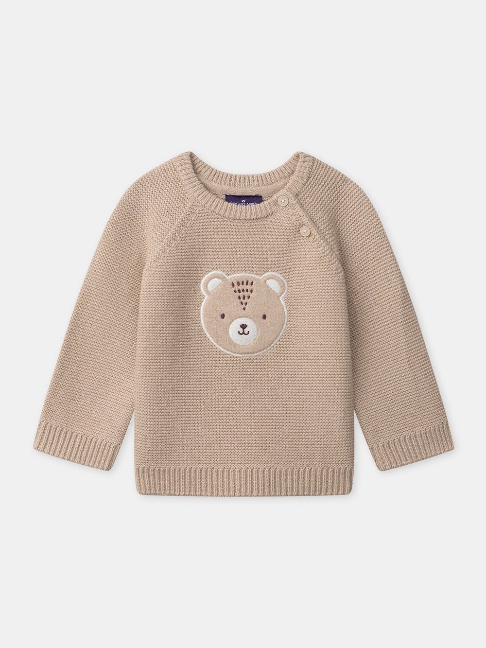 The soft knit and neckline opening make dressing easy. The embroidered teddy bear face adds softness and whimsy.