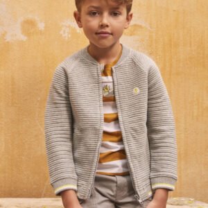 Your son will enjoy wearing this grey quilted jacket on all his adventures. With long sleeves and a round neck, it has ribbing at the cuffs and waist, so it stays perfectly in place. It opens with a zip at the front to encourage youngsters to dress themselves. They can wear it with jeans or trousers to match. Main material : 63% COTTON - 29% POLYESTER - 8% VISCOSE