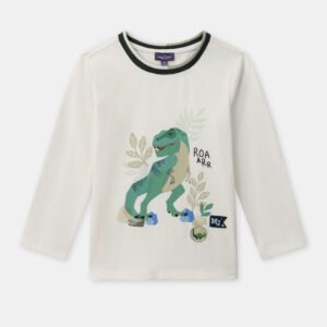 This off-white cotton T-shirt is sure to become your son's favourite. It's made from slub jersey, so it is very comfortable and moves with him without restricting his movements. The inset bands on the sleeves add an extra touch of fun. Its Club des Copains (Best friends club) print conveys a positive message within an original design. Boys can wear it with matching trousers for a casual look. Main material : 100% COTTON