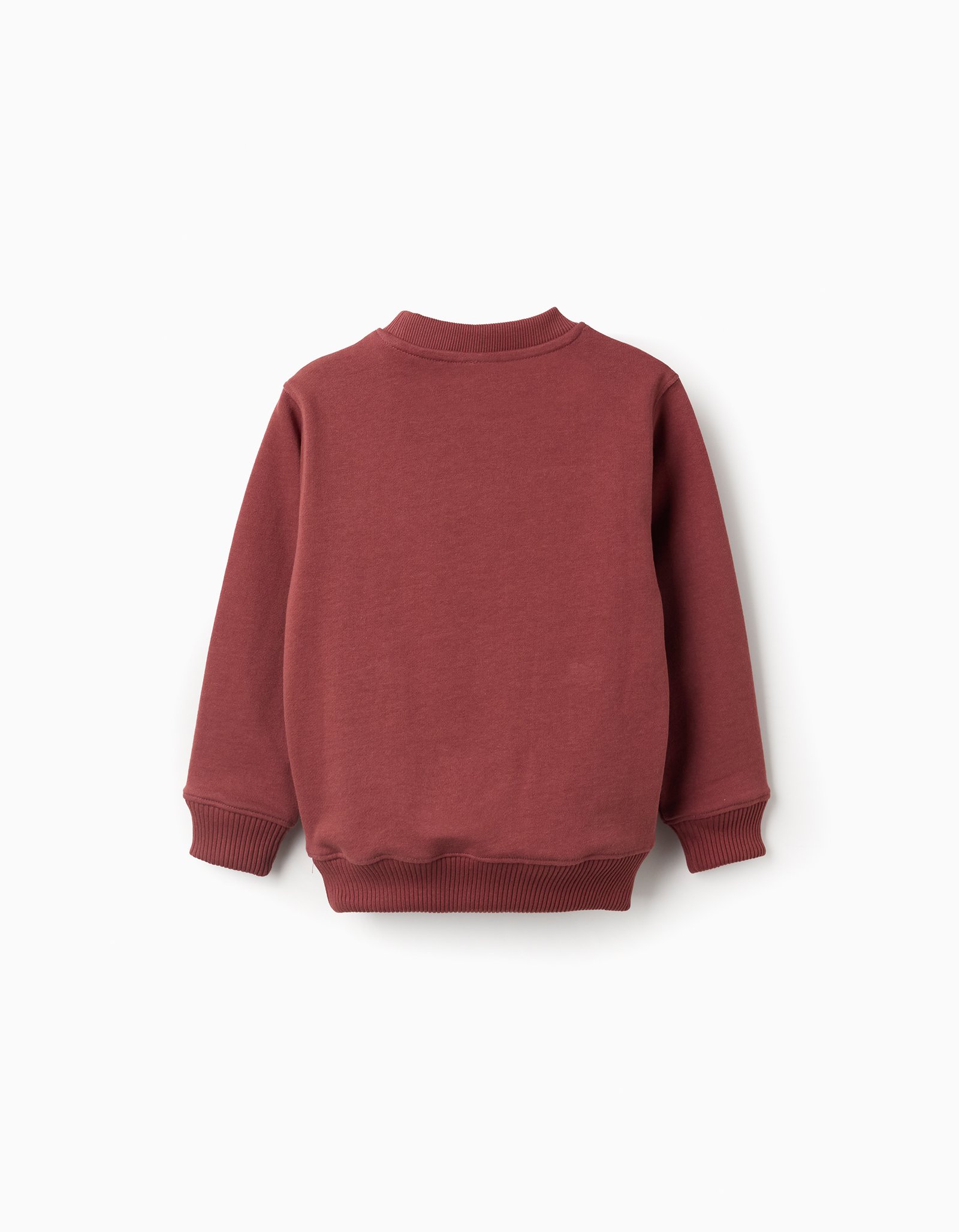 This brown cotton sweatshirt for boys combines comfort and a modern design, ideal for the mid-season. It easily pairs with a variety of T-shirts and trousers, being a versatile option for everyday wear. It is a great option for family outings or for going to school, ensuring your boy is always comfortable.
