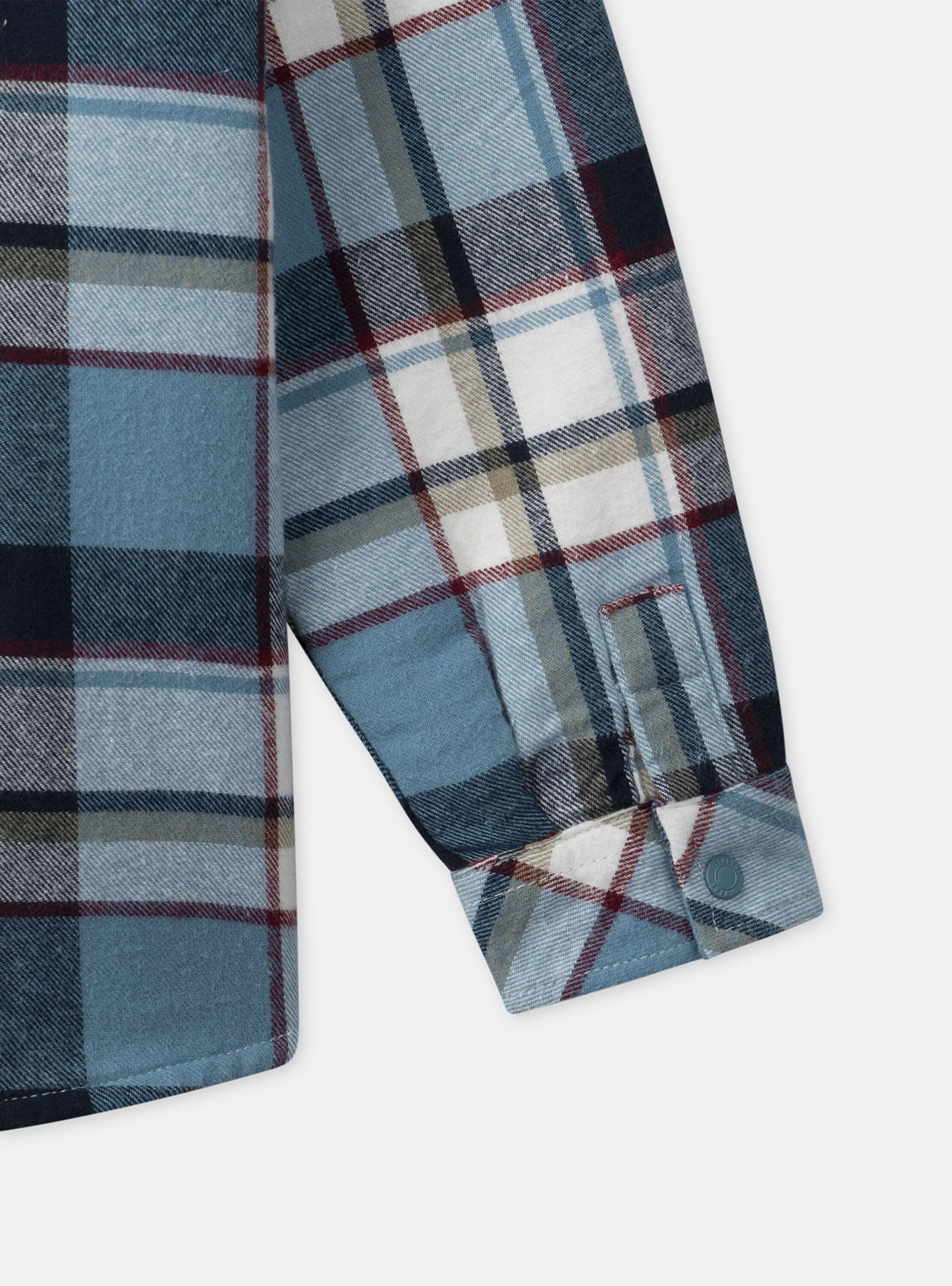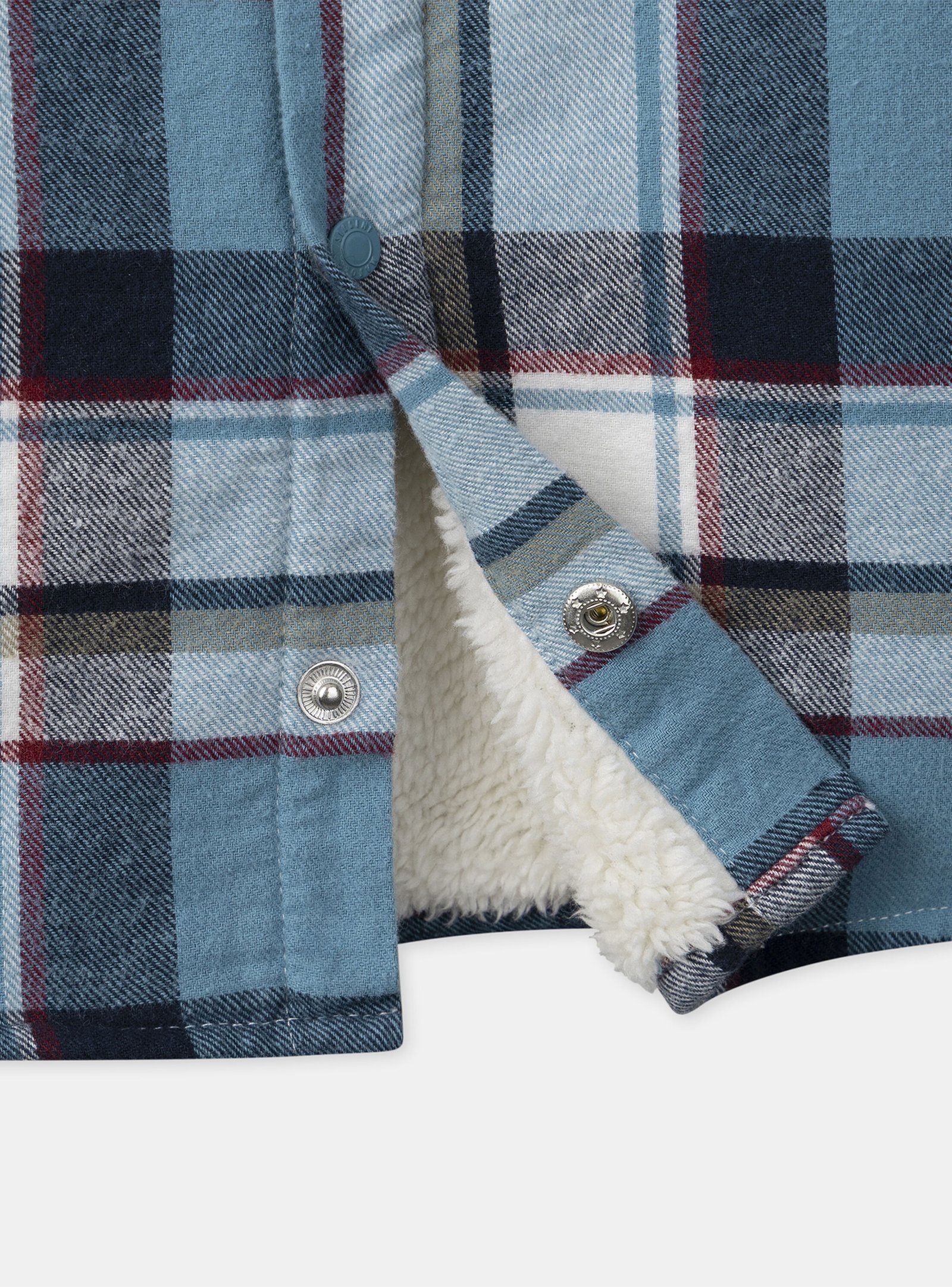 Designed for winter, this shirt keeps active children warm. Made from flannel lined with synthetic fur, it is soft and comfortable. Its blue checks and patches provide a casual and cozy style.