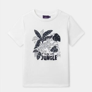 The white jersey ensures everyday comfort, while the jungle print and embroidery create an exotic vibe.