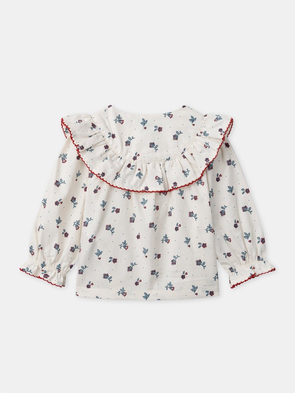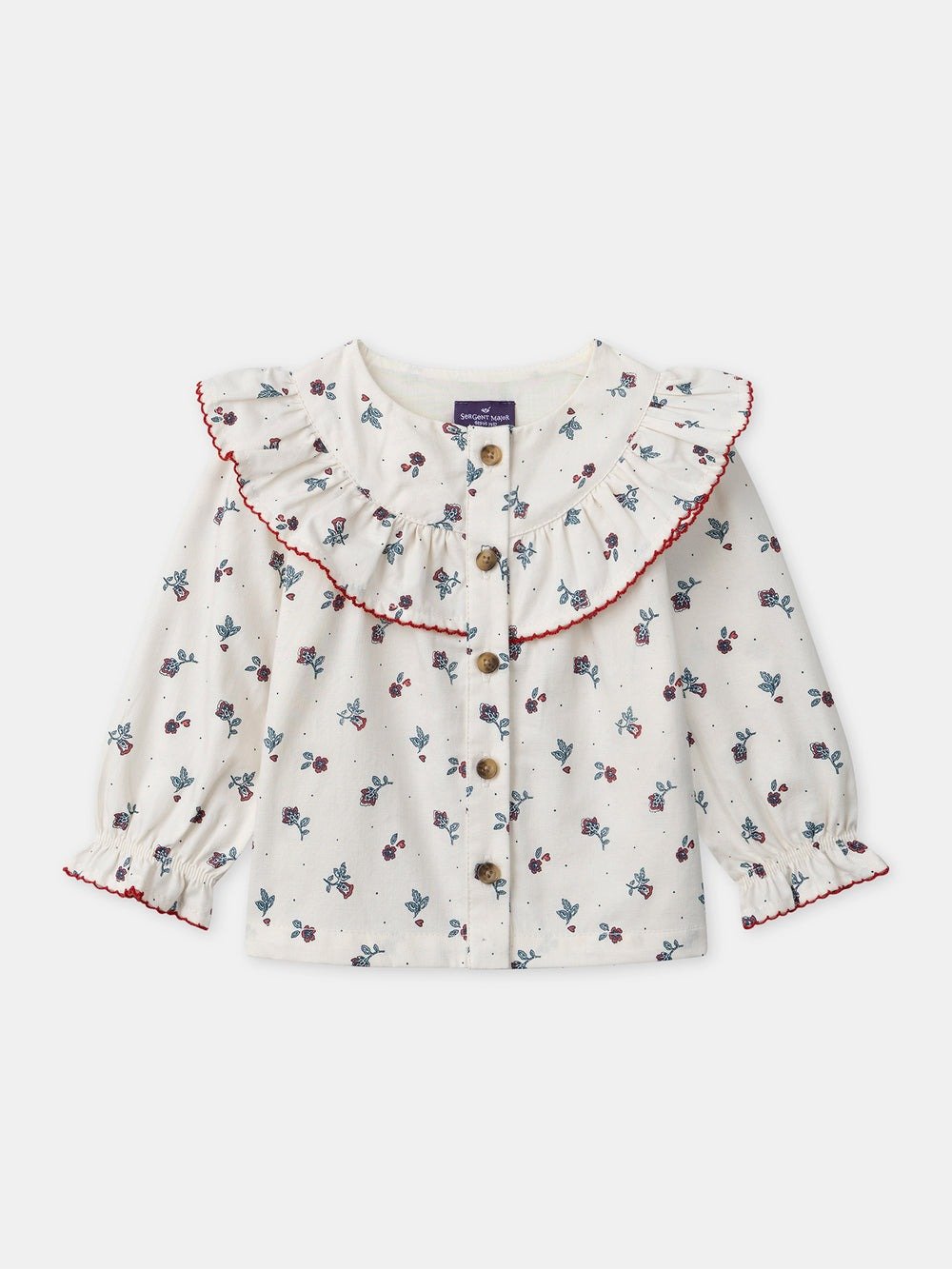 Perfect for cool days, this t-shirt can be worn underneath a cardigan or a sweater. Its soft jersey is comfy to wear. The floral embroidery and ruffles add a delicate touch.