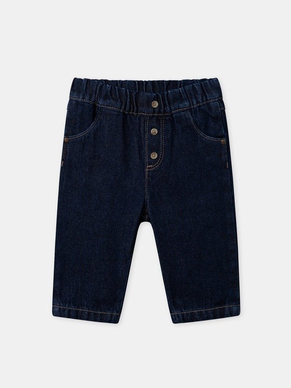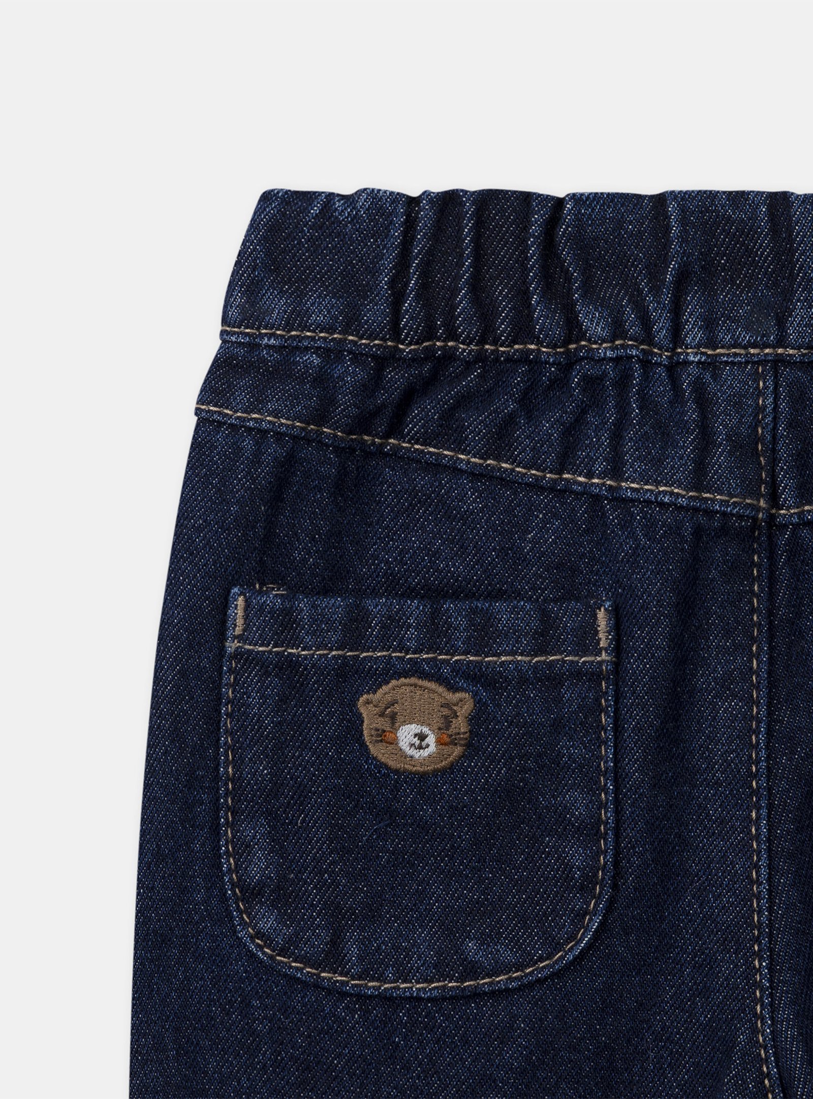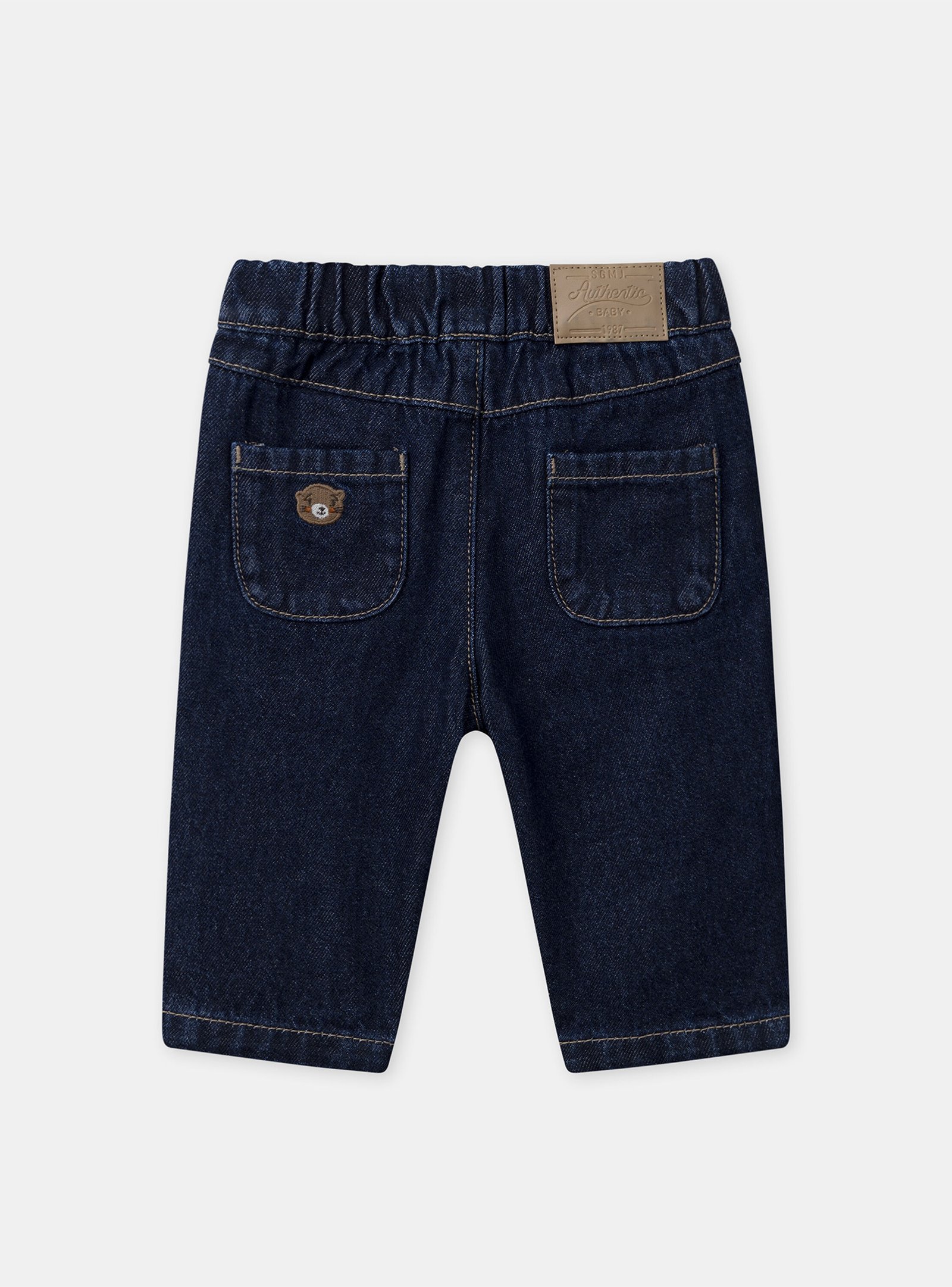 For adventurous kids, these denim pants provide comfort and durability. Elastic waistband, front and back pockets with embroidered details and “SMJ” patch. Its casual and practical style is perfect for all play days.