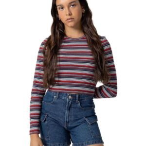 Top with a straight neckline and thin adjustable straps. Crepe elastic and frill detail.