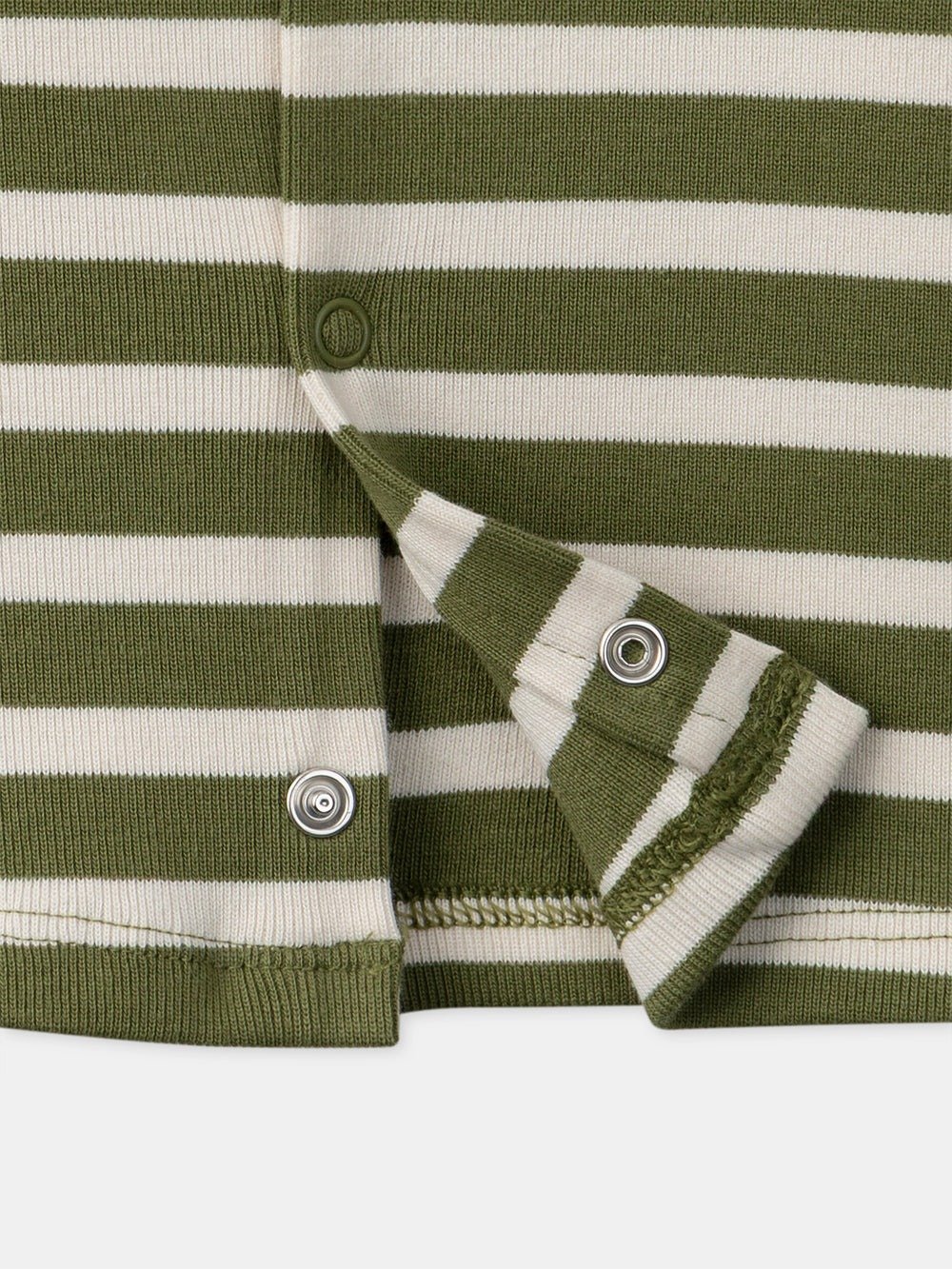 The soft jersey and snap buttons at the back make dressing easy. The embroidered teddy bear creates a charming detail.