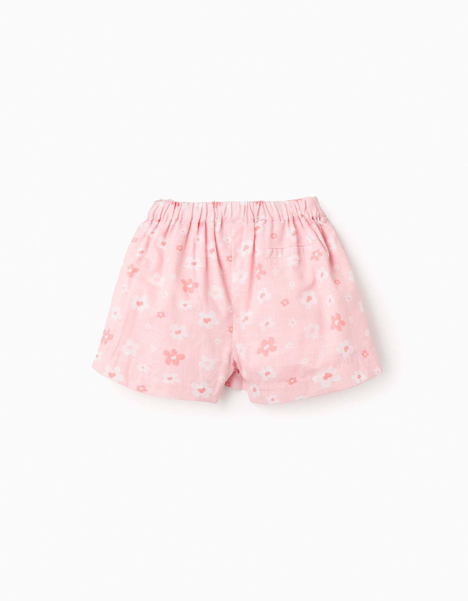 This light pink skort for girls, made from soft cotton, is ideal for warm days. With a floral motif that adds a delicate touch, this skort ensures comfort and freedom of movement.