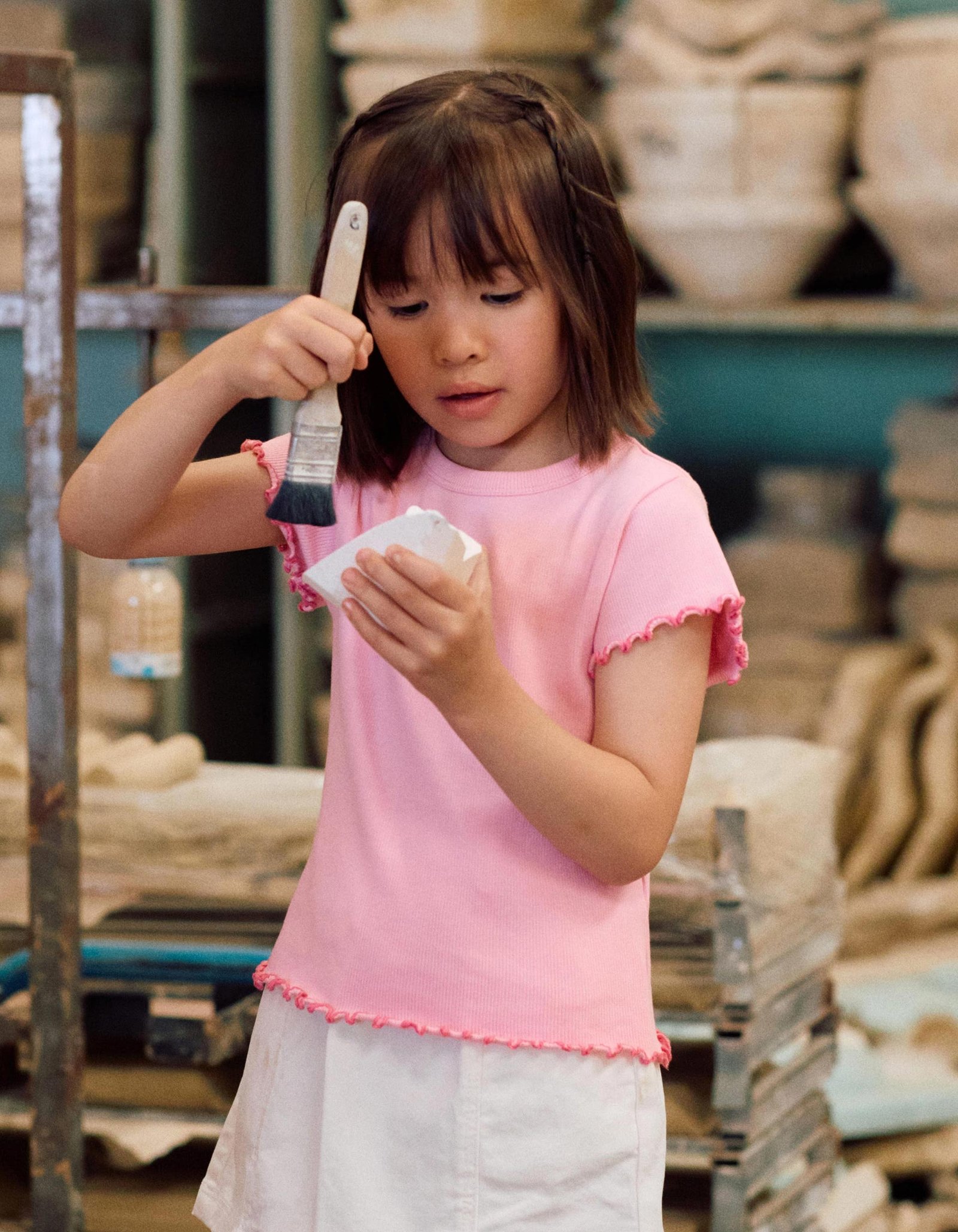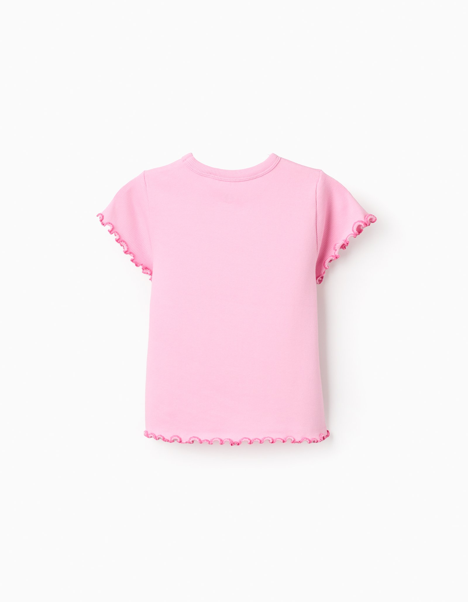 Find the perfect item for those sunny days filled with laughter and adventure with this pink ribbed T-shirt for girls. Made from soft cotton, this T-shirt offers unparalleled comfort and breathability, ensuring your girl feels great while enjoying outdoor playtime or family outings. Featuring wavy ends, it can be easily paired with a variety of trousers, skirts and shorts, for fresh and joyful looks!