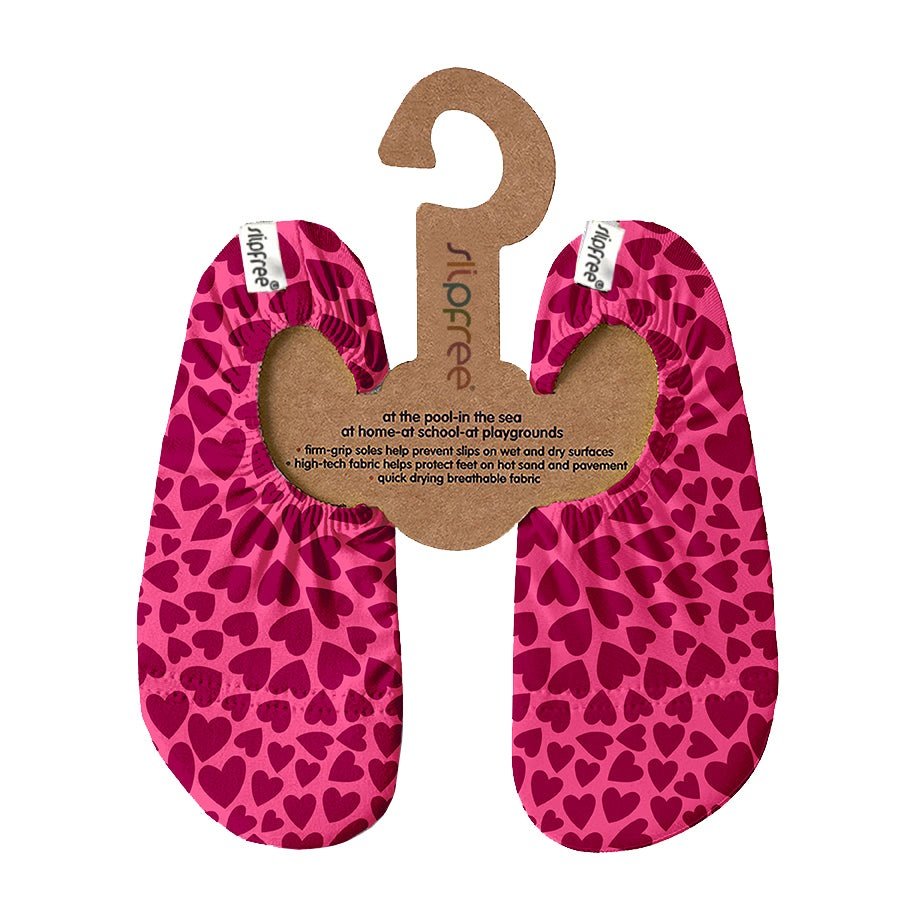 Jump, spin, and twirl with Melissa, a deep pink design dotted with bold dark red hearts. Every heart seems to bounce along with little feet, making every step feel full of fun and energy. Perfect for playground races, dashing around at home, or splashing at the pool, keeping toes comfy and safe. Children will love showing off Melissa’s playful, heart-filled pattern wherever their adventures take them.