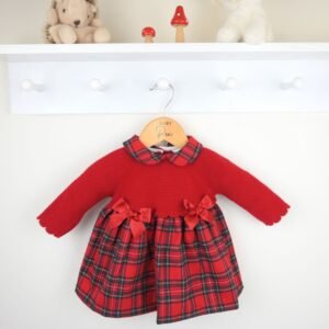 Crafted in a beautifully soft, rich red yarn with a festive tartan fabric skirt and collar. The skirt is lined for added comfort and warmth. Two pretty red ribbon bows at the waist. Perfect for the winter season.